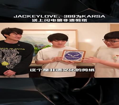 LPL官方晒照:TES为Karsa送上闪电狼非遗剪纸,一起为TES加油