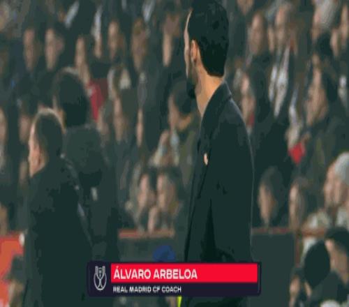 第6分钟,镜头给到场边,皇马新帅阿韦罗亚现场执教