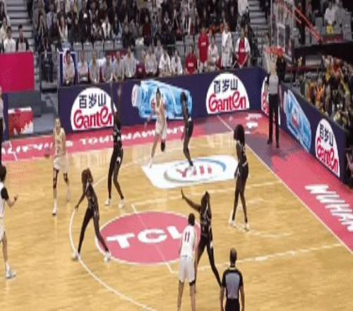 南苏丹队的攻防转换速度极快,球员的柔韧性也很好。而中国队则是稳健的打战术:46-36,中国女篮半场领先对手10分。