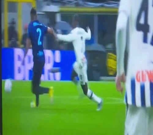 第一个争议判罚,是亚特兰大的进球,苏莱曼纳推倒了邓弗里斯后,获得了射门机会,造成门将脱手后补射破门。