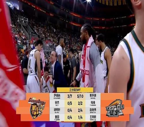 次节开局广东攻势有所好转,焦泊乔、麦考尔开局再造4罚,萨姆纳抢断反击制造2+1,两回得到5分帮助广东打出一波9-4将分差缩小到10分。