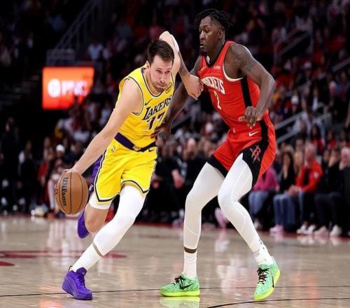 湖人100-92击败火箭赢下关键的卡位战,这场比赛两队鏖战至最后一刻,火箭队在最后的6分钟里只拿到4分全线哑火,而湖人凭借着艾顿、斯玛特、东契奇、詹姆斯四人的轮番得分拿下胜利。