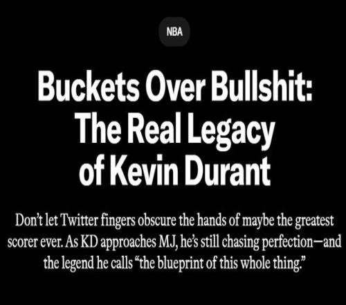 “我追求的是长久,兄弟。”杜兰特说,“我只想赢下比赛,然后回家。我知道这一直是大家议论我的点:‘你没有60分、70分。’但你不能只看一场60分就说‘这就是KD’。你必须看完我的整个生涯,仔细拆解我所做的一切,才能真正理解我是怎样的球员。我喜欢这样。这样更有故事感。我不想昙花一现,我只想一直保持伟大。我没拿过60分,但我创造了很多属于我自己的数据。”