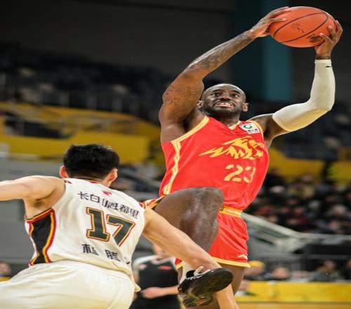 3月18日,吉林长白山恩都里队球员栾利程(下)与浙江浙商证券队球员贾卡尔·桑普森(右)拼抢。新华社记者 江汉 摄