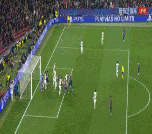 56’拉菲尼亚开出角球,后门柱的莱万力压利夫拉门托头球破网,巴萨5比2。
