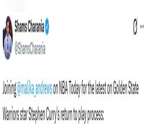Shams表示,库里恢复稳定向好,如果一切顺利,有望在3月底前回归。他在《NBAToday》节目中说道:“目前外界持谨慎乐观态度,斯蒂芬-库里有望在本月某个时候重返阵容。据我了解,他周二下午(当地时间)在波士顿进行了一次效果很好的场上训练,开始奔跑、变向、移动,甚至进行轻微对抗,有点变回我们熟悉的那个库里了。”