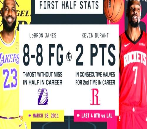 杜兰特依旧很强,但火箭很尴尬,他不进攻或不在场时,火箭很容易陷入得分荒!上半场杜兰特明显在节省体能,第三节站出来连续得分带队逆转,末节初,杜兰特不在,湖人再度逆转建立领先!