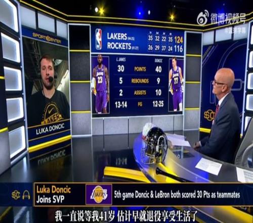 3月18日消息,3月19日结束的NBA常规赛中,湖人124-116客场击败火箭,豪取七连胜。本场比赛,41岁的湖人老将詹姆斯爆砍30分5篮板,赛后,队友东契奇对他赞不绝口。