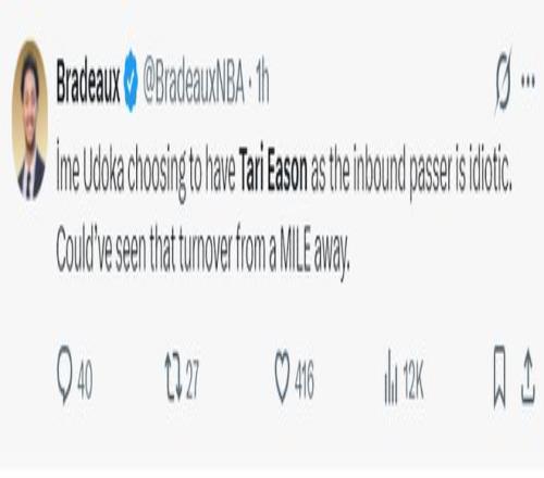 休媒:乌度卡让伊森担任底线传球手真是愚蠢至极,从英里外就能看出他那个发球要失误。