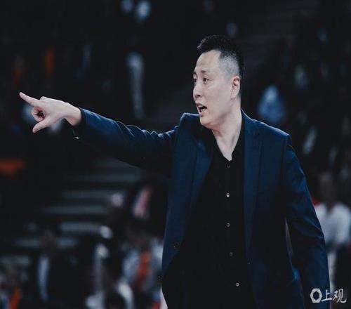 上海男篮主帅卢伟在场边指挥