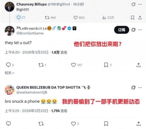很多网友都发现了这一点,他们纷纷涌入比卢普斯的社交媒体,并且提问他说:“你终于被放出来了吗?”、“打扰一下,你还是我认识的那个比卢普斯吗?”、“昌西,你终于自由了吗?”、“杨瀚森很需要你!”