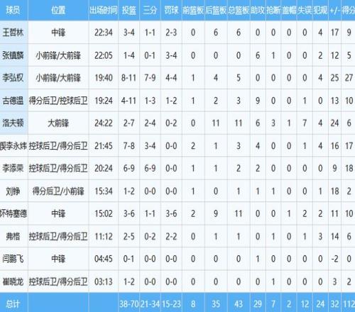 山西队数据如下: