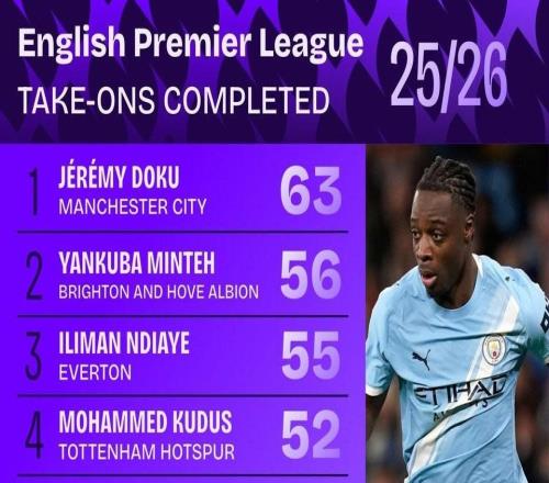 本赛季英超过人榜:多库63次第1,萨卡、内托、埃基蒂克上榜