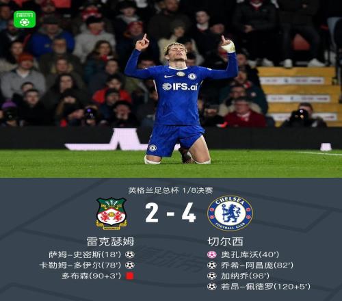 晋级8强!切尔西42十人雷克瑟姆加纳乔加时破门+造乌龙+造红牌